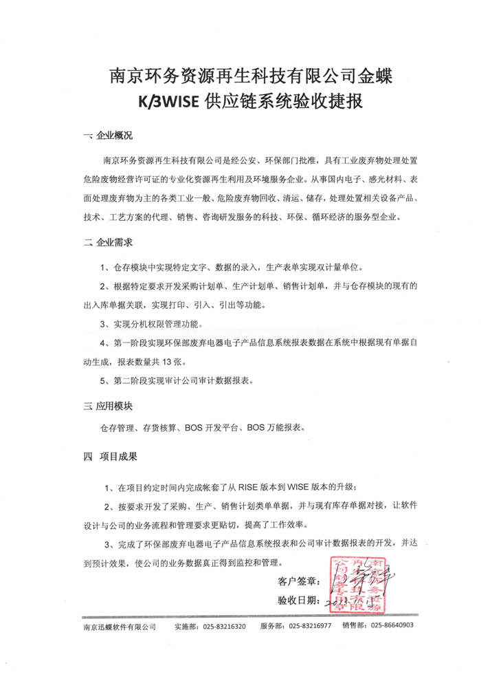 南京环务资源再生科技有限公司 (财务进销存+BOS订制开发)